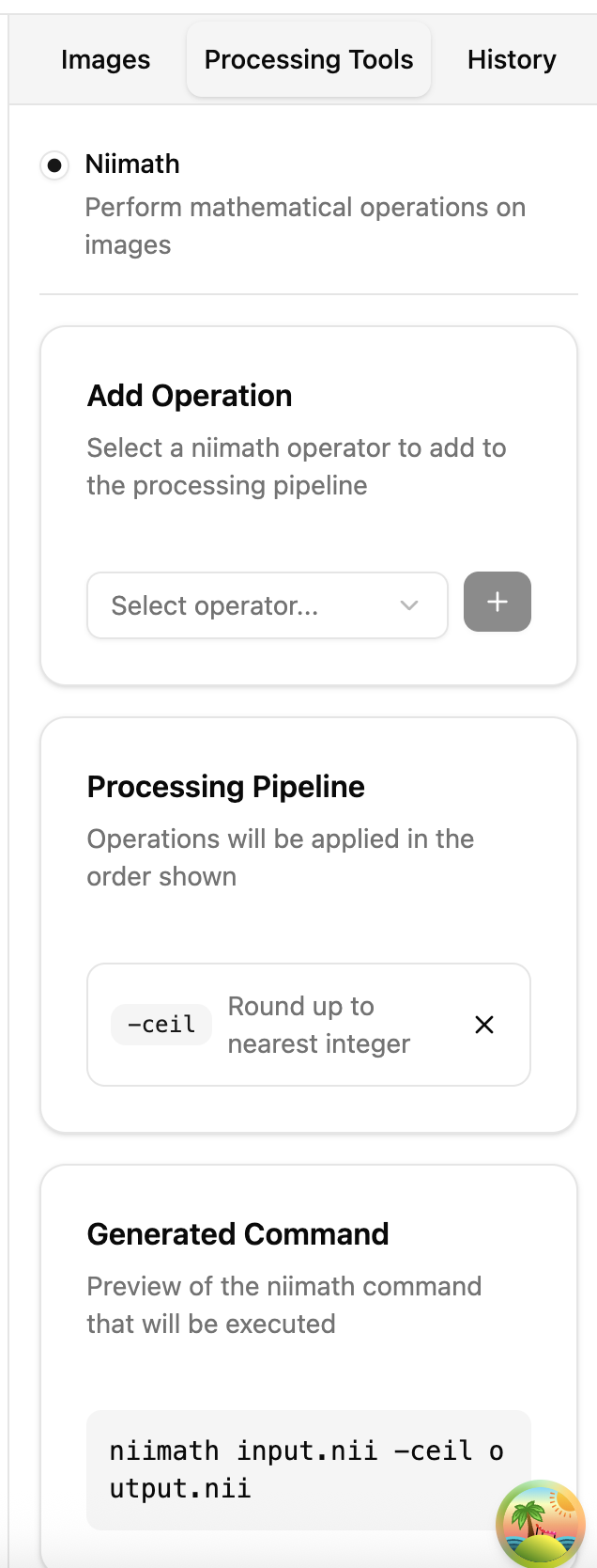 Modular Processing (NiiMath + Backend): A curated set of NiiMath operations is implemented, but the backend is designed for developers to add or swap in their own processing pipelines.